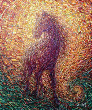 Eduardo Rodriguez Calzado是一位抽象派的艺术家,不过他的风格是采用明亮的颜色,几何形状,线条和点,来组合成一幅色彩绚丽的概念化艺术作品,每个形状又能拼接成画中所要表达的人、事、物,非常的精彩。采用油彩和丙烯颜料绘画而成。