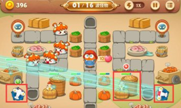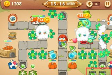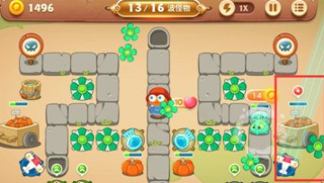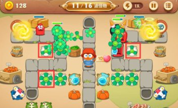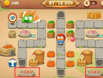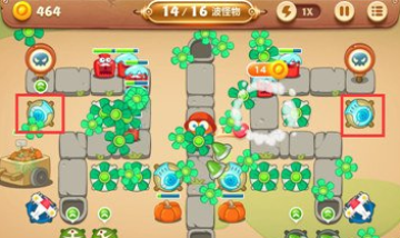 之后可以看怪物是从哪边出再来选择需要点击的建筑物,这一关前面几波都是单侧出现,直到后面才是双侧,并现在右侧建造一个雪球。