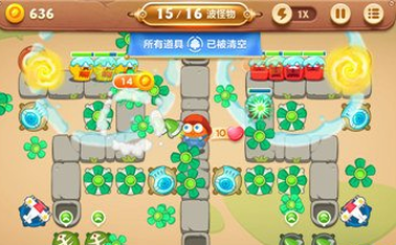 玩家在此关可利用的炮塔有四种,分别是雪球、回旋镖、玩具飞机、风扇,炮塔可选择的种类少,我们需要充分了解新炮塔来通过此关。挑战此关需要消耗6片叶子。