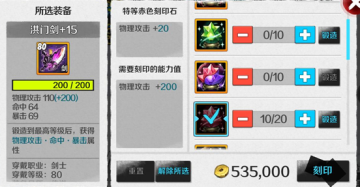 以80级装备为例(200点刻印值)镶嵌10个特等赤色刻印石,你可以在单件装备上获得200点物理攻击的收益。