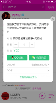 2、然后根据下载的QQ音乐歌曲数量收费,使用QQ钱包或微信进行购买歌曲即可。