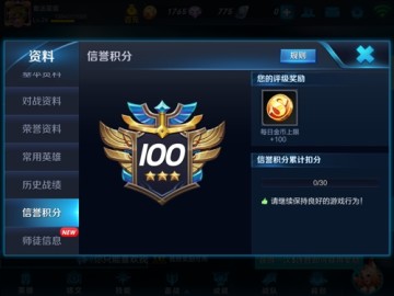每位召唤师的信誉积分初始默认为100分,分数上限也为100分。