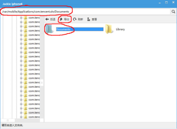 5,弹出来的窗口中显示了手机中导出来的所有数据,点击进入var/mobile/Applications/com.tencent.xin,然后把Documents文件夹导出到电脑上来。