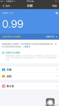 目前,绝大多数用户的余额年限是20万。但从部分网友的截图来看,也有少部分用户的余额支付是无限额的。从官方提示的信息来看,如果用户在过往12个月的营收超过20万的话,账户本年度的余额支付不再受额度限制,2017年1月1日起将重新计算。