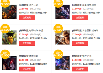 本期半价英雄皮肤购买地址:http://daoju.qq.com/lol/act/rushbuy.shtml