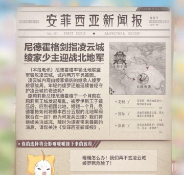 玩家登陆游戏后会收到安菲西亚新闻报的消息,莉莉丝王城发生叛乱,玩家需要选择回凌云城就绫罗还是继续寻找奇迹卷轴。