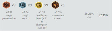 符文红色选择9个法穿,蓝色9个魔抗,黄色9个成长生命值,精华则是3个移动速度。