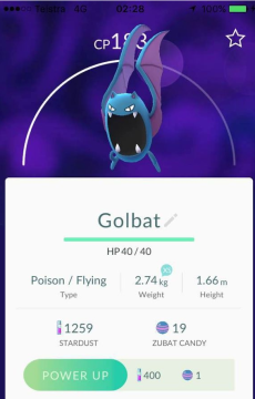 图中第一个大嘴蝠是我强化到上限之后进化的,大概130左右CP, 第二个是随便抓来进化的,大概50左右CP。可以明显的看出来他们的可强化上限不一样。 另外强化满之后进化CP值也是满的。 下个验证问题是不同强化上限的pokemon(即训练家等级不同)都强化至上限之后再进化会不会有差别。