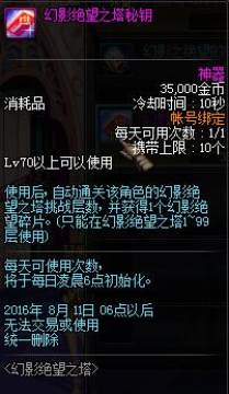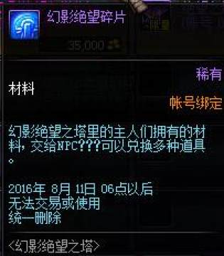 1、玩家每天可以购买幻影绝望之塔秘钥一个,打开后可获得1个幻影绝望碎片。