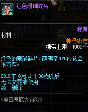 作者:腾牛小编 人气:0DNF红色珊瑚碎片怎么获得快,浮潜次数又怎么获得?新的夏日海底大冒险活动是一个福利不错的活动,玩家通过活动获得红色珊瑚碎片,可以拿去一次性兑换到数量惊人传说装备兑换材料和整件传说首饰,对于小号快速提升自身实力也是相当不错的。