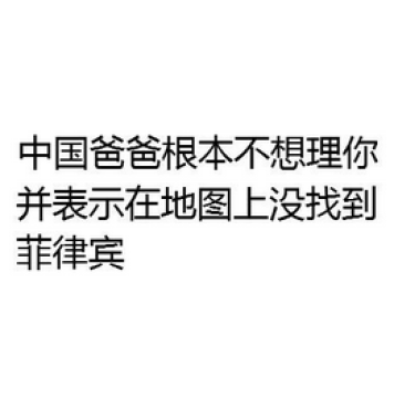 作者:qqtn强柔 人气:0导读: 网友们有些话想对菲律宾说,所以就制作出了以下纯文字表情,适合微信群聊,内容主要为中国爸爸并不想和你说话何中国爸爸拒绝了你的消息系列,希望你们会喜欢。