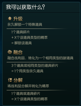 融合功能:融合战利品,转化为一个相同类型的新道具