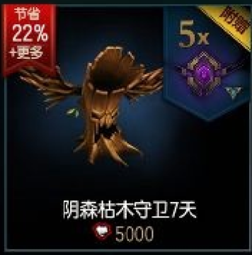 2)5000点卷购买枯木守卫皮肤7天,赠送传送门*5,符石*5