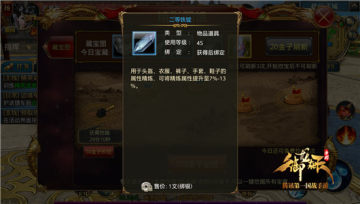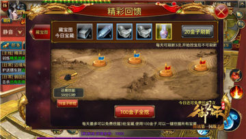 藏宝图每天都会更新奖励,而奖品会有所不同,每次刷新都需要20金,超过部分都需要100金才能继续挖。金子富裕的玩家可以先花20金刷新奖励,刷到自己满意的奖励便可花100金一次挖完。对于金子不富裕的玩家,也能刷新奖励,看到自己喜欢的道具就可以开始挖宝。对于没有金子的玩家也是可以玩的,每天上线就点开藏宝图开始挖,也不需要刷新,就从第一个开始挖,说不定还能挖到一个极品道具奖励。