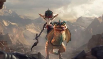 主角是一个身材矮小,浑身是毛的种族,应该是约德尔人,他的坐骑就是之前在海报中的主角,一只蜥蜴。
