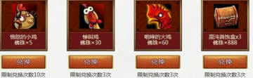 活动说明:在本页面兑换游戏道具消耗相应佛珠,鼠标移至图标上方即可查看物品说明。佛珠可在活动期间充值获得。