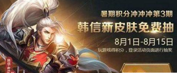 作者:腾牛小编 人气:0王者荣耀韩信教廷特使皮肤抽奖活动怎么玩,韩信教廷特使皮肤抽奖网址是多少?日前王者荣耀暑假积分冲冲冲活动第三期开始了,从活动中可以抽取王者荣耀韩信教廷特使皮肤,那么王者荣耀韩信教廷特使皮肤抽奖地址什么?下面给大家带来韩信教廷特使皮肤抽取活动链接。