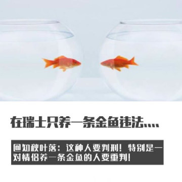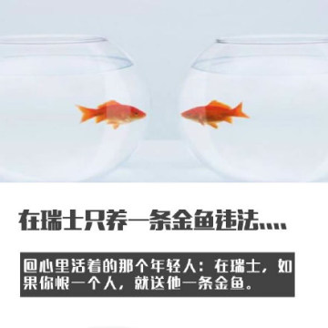作者:腾牛小编 人气:0导读: 当某一天,世界上的所有的东西都成双成对,才是我们最想要的未来。然后瑞士现在已经在关爱单身狗的道路上先行一步了,并且没有开玩笑的颁布了一条法律,养一只金鱼是犯法的,因为它会孤独。