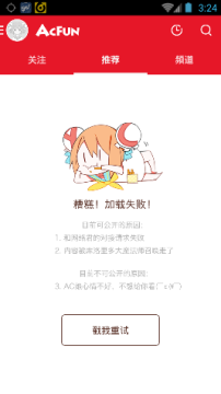 同时acfun的客户端也出现了同样的情况:
