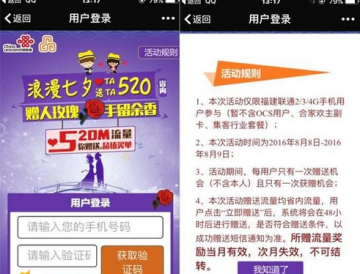 作者:qqtn强柔 人气:0浪漫七夕,福建联通推出给力活动!如果你想免费领取520M流量的话,那就来看看本文活动详情吧,只需输入手机号,即可领取有爱的520M流量哦!本活动仅限福建用户参加!