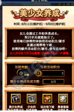 3、养女儿的过程中,女儿到达一定经验值年龄增加,可以获得数量不少的美少女养成硬币奖励
