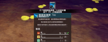 4、再次摧毁一个机器人后,又拿到了一个瓦砾,打开后得到了一个【雷霆炮弹匣TAU】设计图。这个是武器的辅助元件,下面也显示了制造所需要的元素。