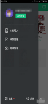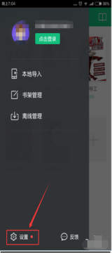 3.在我的书架界面,点击左上角的菜单图标,打开菜单界面,如图所示: