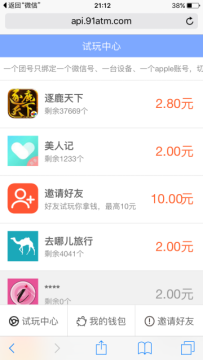 试玩团中,1个团号只绑定一个微信号、一台设备、一个apple账号,切换任何一方都会导致无法正常使用