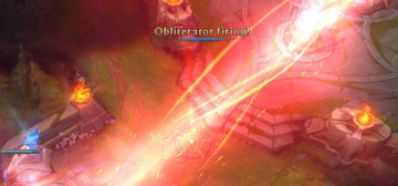 4、终结者:注意这个东西只有防守方有,触发条件很简单,当进攻方将兵线推到敌人基地时会开始计算小兵数量,当小兵数量达到15个将触发一次“终结者”效果,终结者将杀死敌人三线上的所有目标!!!是不是很酷炫。(效果见下图)