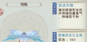 再来就是羽翅法宝了,我们可以先看看该法宝属性: