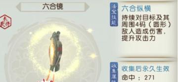 在上图中我们可以看到六合镜法宝技能不仅可以提升攻击力,还有附带攻击向的命中属性,对于青云来说的确是一个比较适合的法宝。