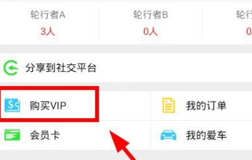 1、打开轮行天下app,在“个人中心”页面点击下方的“购买VIP”选项;