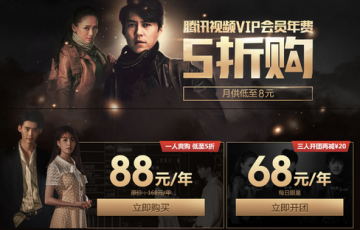 5折购腾讯视频年费会员 每日限量68元/年