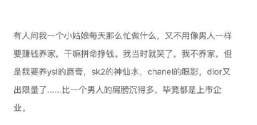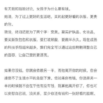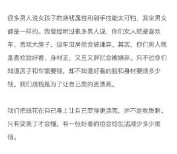 导读: 有些时候处于中产阶级是最痛苦的,因为你要知道自己要做的不只是维持生计。因为你还要出门,还要保养自己。所以看到的那些漂亮的女生都自带烧钱属性。