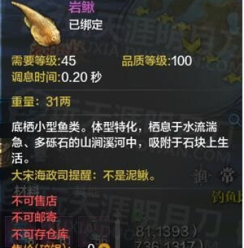 积分都是固定的,10两的岩鳅和100两的岩鳅都是65分。