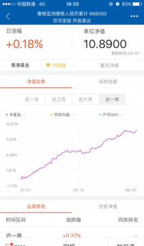 查阅发现,"轻定投"对接产品为摩根亚洲债券人民币基金,近一年年化收益接近9%,是余额宝(2.33%)的近4倍。