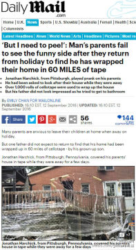 熊孩子不分国界搞笑图片 熊孩子用上千卷胶带看家