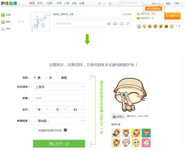3、注册进入沪江部落首页后,点击右上角的“完善信息”按钮,填写相关信息。