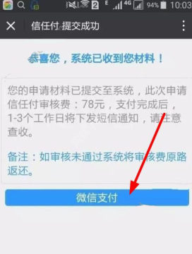 提交成功以后,需要支付78元的审核费,然后等待审核通过放款即可!审核不通过全额返回。