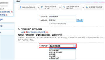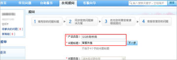 1、进入在线提问页面后,先选择好产品类型,问题标题,完成后点击下一步。