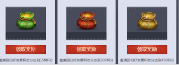 4、只要您邀请的回归好友在本页面上活动2的积分总和达到了指定分数,即可领取积分奖励。