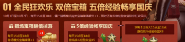 一、全民狂欢乐 双倍宝箱 五倍经验畅想国庆