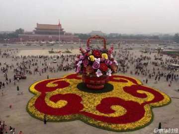 2016年北京国庆大花篮霸气图片 天安门广场图片