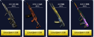 消耗相应武器碎片,可兑换下方相应道具。不可重复领取。碎片达到极限后不累加