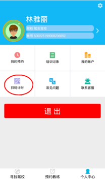 1、打开app,注册登录后,在【个人中心】页面,选择【扫码计时】点击进入;
