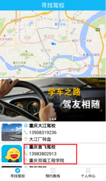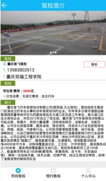 打开app,注册登录后,在【寻找驾校】页面,手机就可自动定位进行找驾校信息,选择自己想要的驾校点击进入;