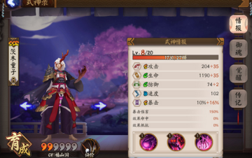 茨木童子是典型的攻击输出型式神,所以二、四、六号位皆选择攻击力百分比,二号位可选择速度,六号位可选择暴击率更稳定。