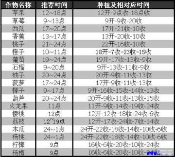 QQ农场作物最优种植时间及收获时间 时间:2009/11/20 10:43:00 作者:佚名 人气:0 这里我们为各位玩QQ农场的农友提供一份种植时间表和相对应的收获时间表: 如果大家是在什么时候种植请参考以下的种植作物作为参考! 让你做到最大化的不要在田里耽误时间! 加载全部内容