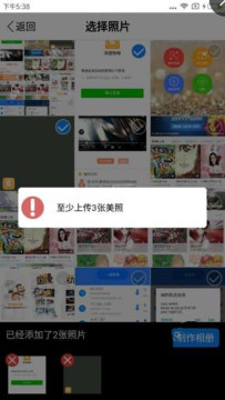 2.然后在本地文件至少上传3张美照,进入下一步。