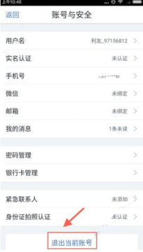 2、接着在【帐号与安全】页面,点击【退出当前帐号】即可。